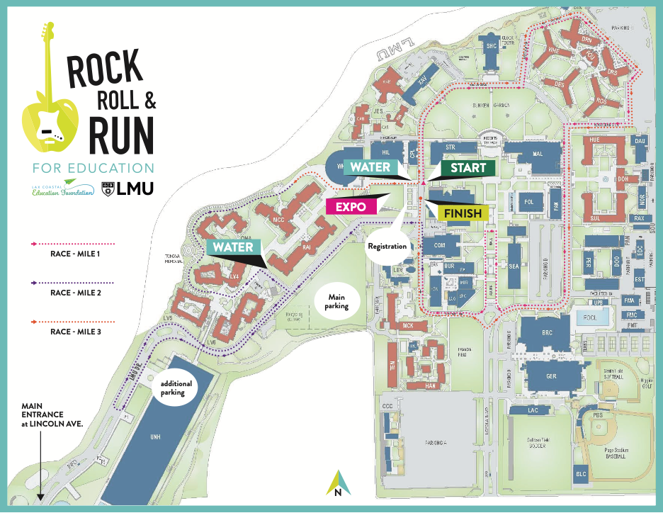 For more information, please refer to the campus map below or visit the Rock Roll & Run website.
