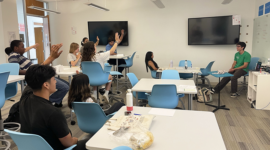 Co-founded by Jason D’Mello, Ph.D., associate professor of entrepreneurship, the program began as a summer camp and has steadily expanded over the years, now offering multiple weeklong sessions each summer. “The idea was, let’s teach college students, but let’s have them learn about financial literacy so that they can teach high school and middle schoolers,” D’Mello said. “There’s something about someone who’s just a bit older, who’s going through this in real time, sharing it with you. You’re getting an insight into their lives and a preview of what your life is going to be like.”